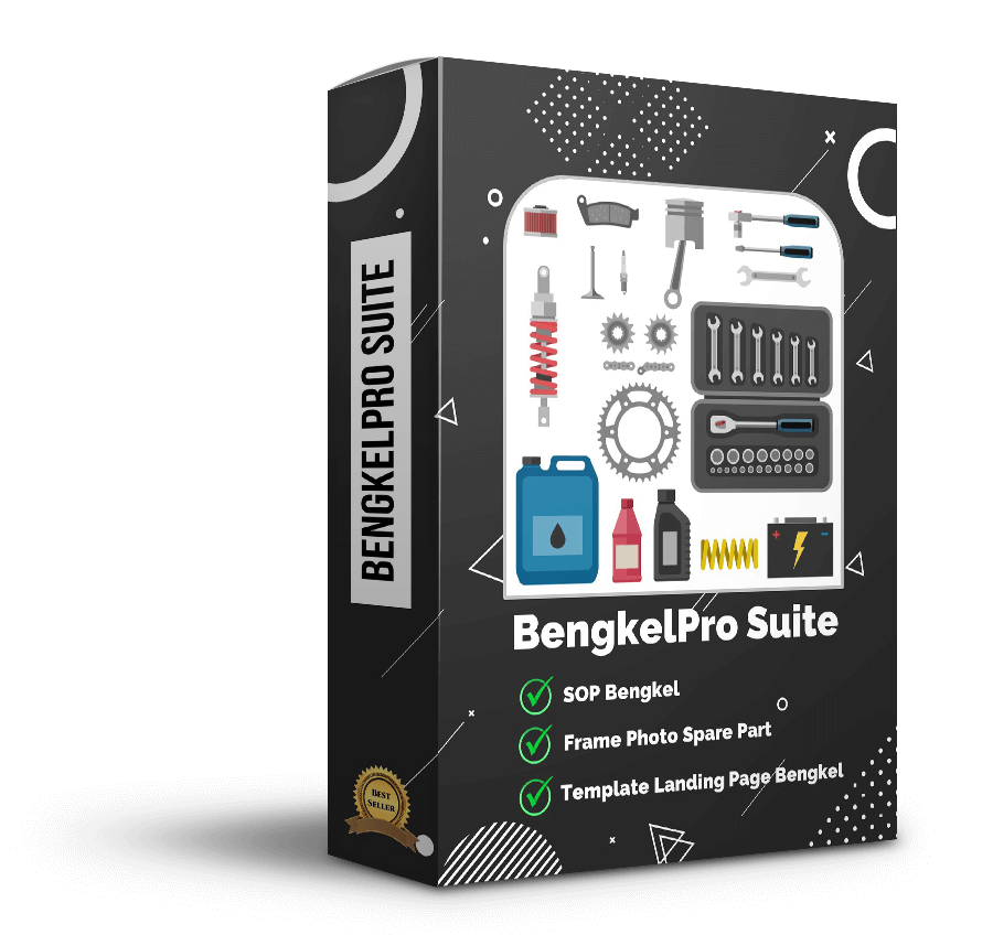 Ini adalah Paket 3 in 1 BengkelPro Suite yang berupa: SOP, 35 Frame Photo Produk / Spare Part Templates, dan 5 Landing Page Templates untuk mendukung kebutuhan pengembangan usaha Bengkel Anda.